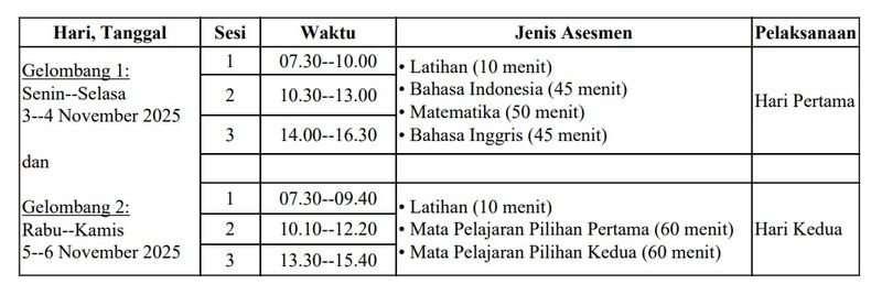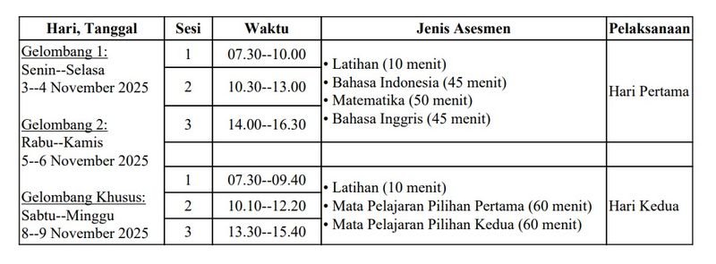 Saat ini, siswa SMA dan sederajat yang mengikuti TKA masih melangsungkan simulasi. Simulasi ini berlangsung sejak Senin, 6 Oktober hingga hari ini, Kamis, 9 Oktober 2025.
