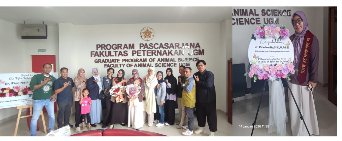 YOGYAKARTA, SUARAGURU.ID– Ririn Novita dosen muda Prodi Peternakan Fakultas Pertanian UNMURA, berhasil mempertahankan disertasinya pada ujian promosi doktor yang diselenggarakan Rabu,14/01/26 yang berlangsung 08.00 hingga pukul 10.00 wib, bertempat di Fakultas Peternakan Universitas Gadjah Mada.