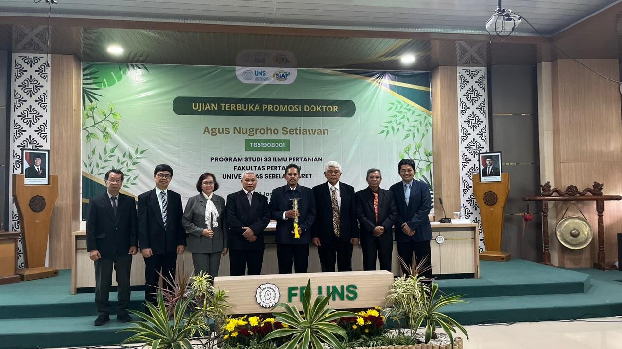 SUARAKARTA, SUARAGURU.ID- Pada hari ini Rabu (28/01/26), Agus Nugroho Setiawan dosen asal Prodi Agaroteknologi, Fakultas Pertanian Universitas Muhammadiyah Yogyakarta (UMY) berhasil mempertahankan disertasinya pada ujian terbuka promosi doktor yang diselenggarakan di Ruang Aula Fakultas Partanian Universitas Sebelas Maret, Surakarta.